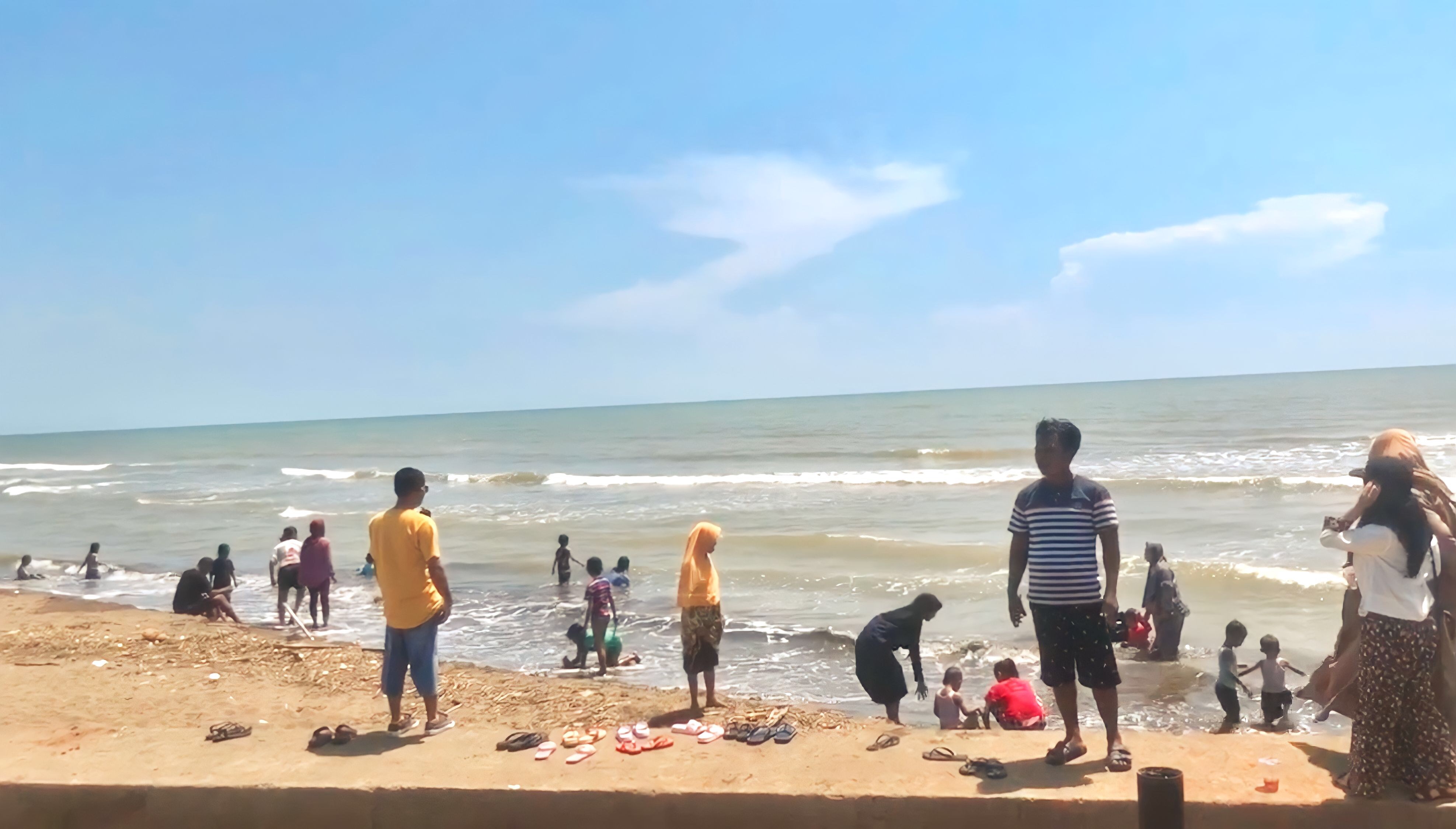 Wisatawan Pantai Pasir Kencana Pekalongan bermain di tepi pantai. Foto: Istimewa