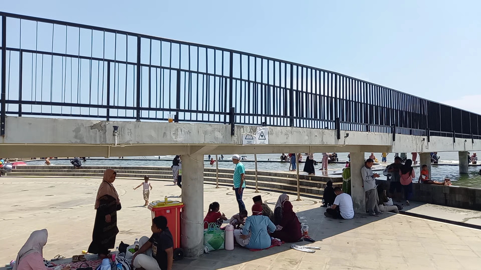 Bagian bawah Sky Walk Objek Wisata Pantai Pasir Kencana yang dijadikan tempat berteduh pengunjung. Foto: Istimewa