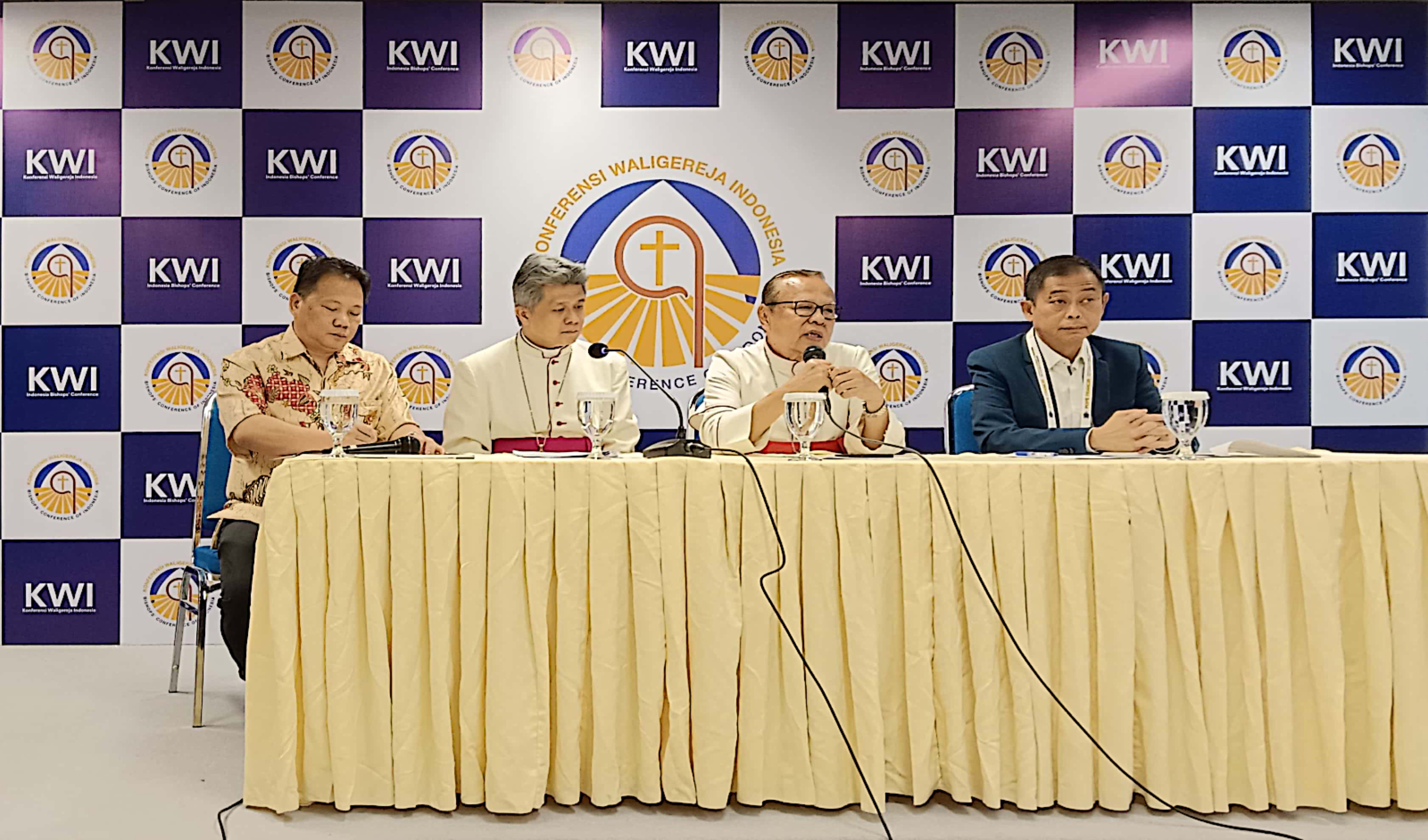 Ketua Panitia, Ignasius Jonan, Uskup Agung Jakarta, Ignatius Kardinal Suharyo, Ketua KWI, Mgr. Antonius Bunjamin Subianto, OSC, serta Juru Bicara Panitia, Romo Steven Lalu hadir dalam konferensi pers tersebut.