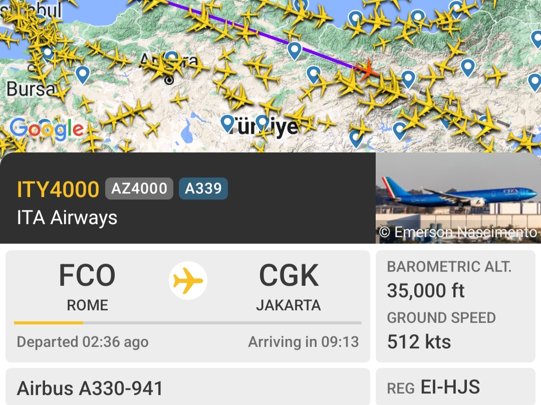 Katolikana.com, Turkiye — Rabu dini hari (3/9/2024), waktu Indonesia, pesawat ITA Airways dengan nomor penerbangan AZ4000 yang ditumpangi Paus Fransiskus terlihat mulai memasuki wilayah udara Asia. Pantauan tim Katolikana.com, pada pukul 01.05, pesawat yang membawa rombongan Paus Fransiskus telah berada di timur Ankara, Turkiye.