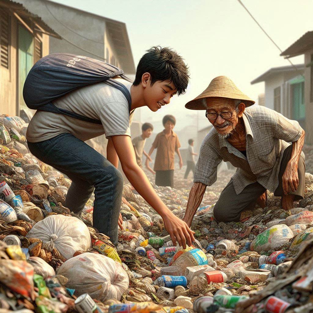 Seorang pelajar SMA yang sedang live in di keluarga pemulung di Jakarta. Ilustrasi: AI