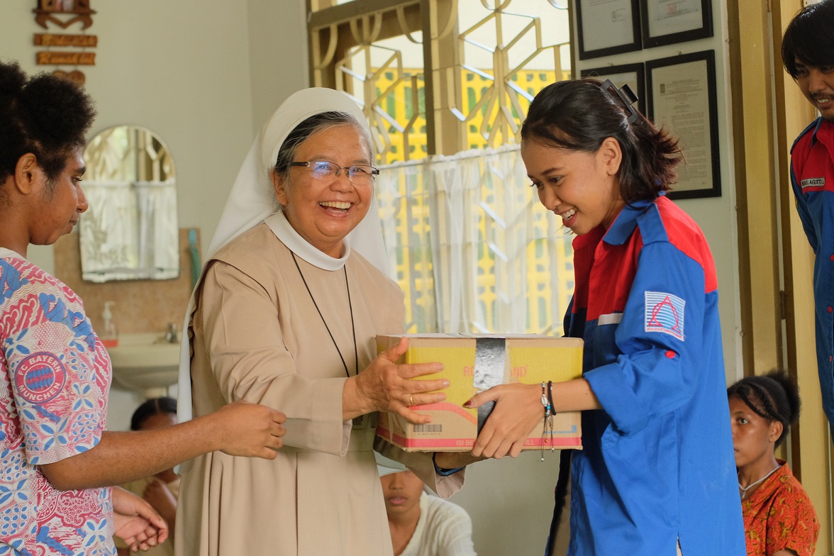 “Kunjungan ini bukan hanya soal bantuan, tapi membawa kehadiran yang penuh kasih. Anak-anak di sini sangat senang. Terima kasih sudah datang dan berbagi. Semoga Tuhan memberkati kalian semua,” kata Suster Agusta PIJ.