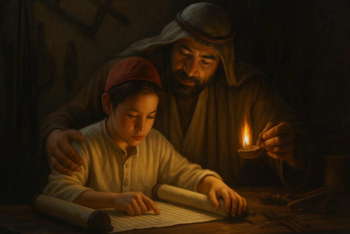 Sebagai seorang Yahudi, pembentukan Yesus muda sangat dipengaruhi oleh tradisi religius. Kita dapat membayangkan Ia menginternalisasi Shema Israel—doa inti iman Yahudi—yang diucapkan setiap pagi dan malam.