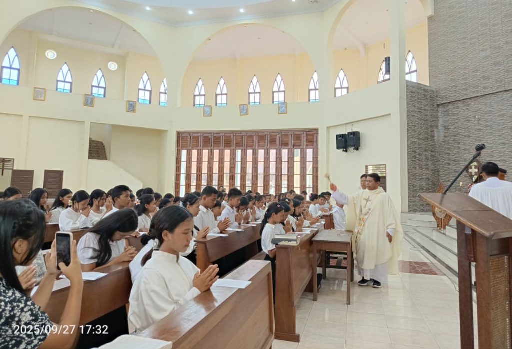 Tanah Jawa, Sumatera Utara – Di sebuah sudut Gereja Katolik, ada sekelompok kaum muda yang berlutut, wajah mereka memancarkan campuran keteguhan dan kerendahan hati.