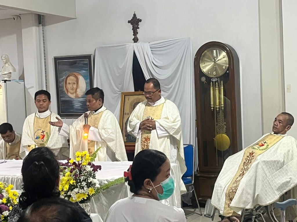 Misa kudus dipimpin oleh Romo Agustinus Riyanto SCJ yang kini menjabat sebagai Dekan di Fakultas Humaniora dan Ilmu Pendidikan Unika Musi Charitas Palembang.