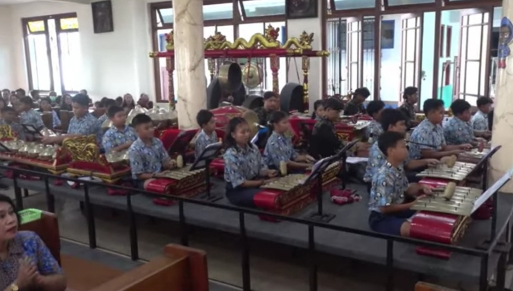 Perayaan ekaristi diiringi musik gamelan yang dimainkan oleh siswa-siswi Kanisius.