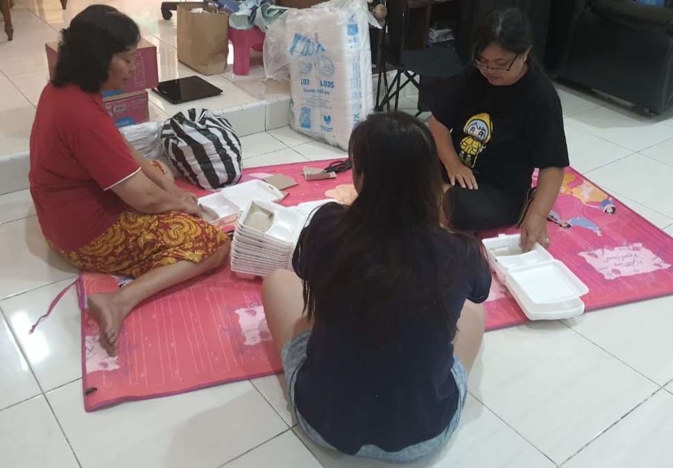 Sekitar 50 pax nasi bungkus dibagikan dalam kemasan praktis. Nasi bungkus dibagikan pada saudara-saudari yang sekiranya ‘berkenan menerima’ dan membutuhkan.