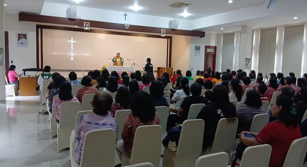 Pada saat homili Romo Hibertus Hartono, MSF mengajak ibu-ibu masuk dalam keheningan, memejamkan mata sejenak dan melakukan refleksi.