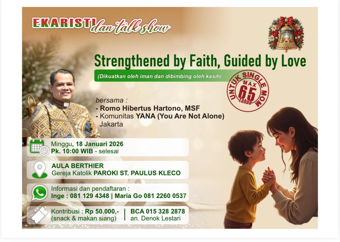 Surakarta, Katolikana.com – Single mom dari beberapa paroki di Surakarta hadir mengikuti Perayaan Ekaristi dan talk show di Ruang Berthier Gereja Santo Paulus Paroki Kleco Surakarta, Minggu (18/1/2026), pukul 10.00 WIB.