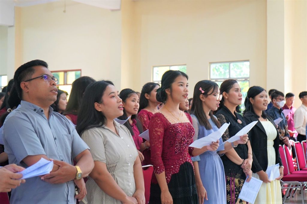 Sejak awal, nuansa yang muncul bukan “acara seremonial,” melainkan perjumpaan komunitas: para pengurus yayasan, dosen, tenaga kependidikan, hingga mahasiswa-mahasiswi duduk sebagai satu keluarga iman.