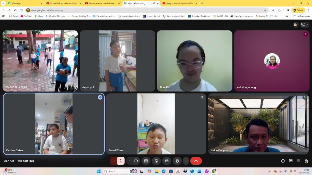 Sebelum kegiatan pembelajaran jarak jauh (PJJ) berlangsung, Bapak/Ibu Guru di SDLB C Tri Asih 2 bersama seluruh peserta didik yang terhubung melalui layar ‘Interractive Flat Panel/IFP,’ pemberian presiden Prabowo Subianto dengan melakukan kegiatan wajib, di antaranya: