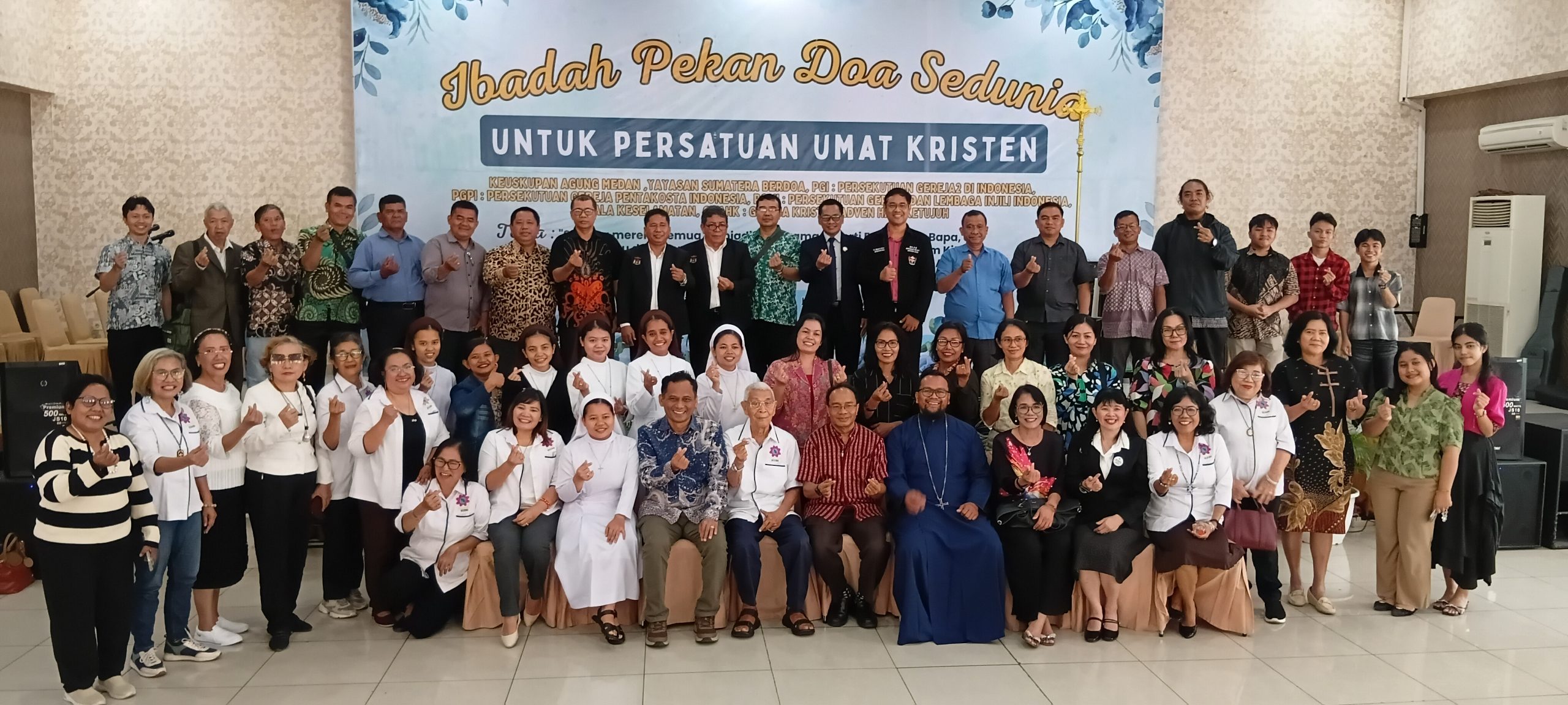 Medan, Katolikana.com—Ibadah Pekan Doa Sedunia (PDS) 2026 untuk Persatuan Umat Kristiani mempertemukan sekitar 800 jemaat Katolik dan umat Kristen Protestan lintas denominasi dalam satu perayaan ekumene, dengan penekanan pada doa dan komitmen merawat persaudaraan dalam Kristus, di Ruang Orchid lantai 8 Gedung Catholic Centre (CC) Medan, Jumat (23/1/2026).