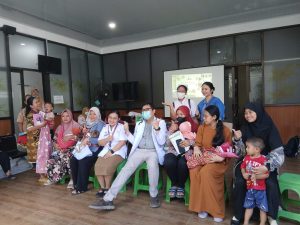 Berfoto bersama dr. Mahafendy Suryamanika Tulan, Sp. A dari RS Brayat Minulya Surakarta, dr Margaretha Adhiningrum dengan orang tua dan balita saat penyuluhan tumbuh kembang balita.