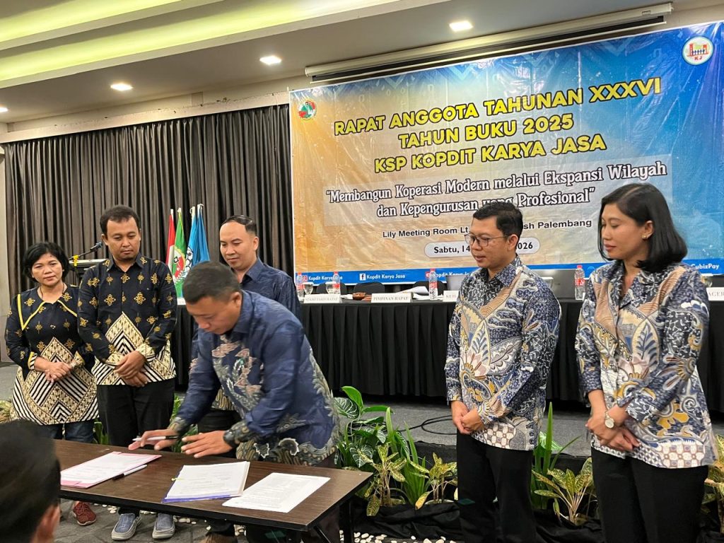 PALEMBANG, katolikana.com    –   Koperasi Simpan Pinjam (KSP) Kopdit Karya Jasa Palembang sukses menyelenggarakan Rapat Anggota Tahunan (RAT) ke-36 untuk Tahun Buku 2025. Agenda besar yang berlangsung selama dua hari (14–15 Februari 2026) ini menjadi momentum penting bagi koperasi dalam menegaskan transformasinya menjadi lembaga keuangan yang modern, transparan, dan inklusif.