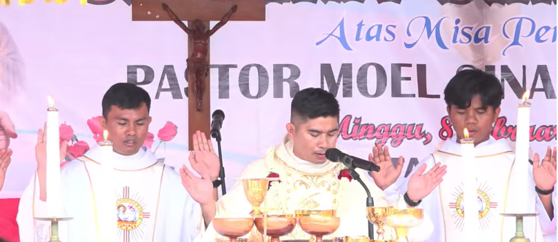 Dalam homilinya yang sederhana namun menyentuh, Pastor Moel berulang kali mengucapkan kata yang menggugah hati umat: “akhirnya, akhirnya, akhirnya gabe pastor.” Ia membagikan kisah penantian panjangnya, bagaimana selama bertahun-tahun banyak orang bukan mengucapkan “selamat”, melainkan berkata, “akhirnya ya, Pastor.” Sebuah ungkapan yang mencerminkan perjalanan iman yang tidak instan, tetapi ditempa oleh kesabaran.