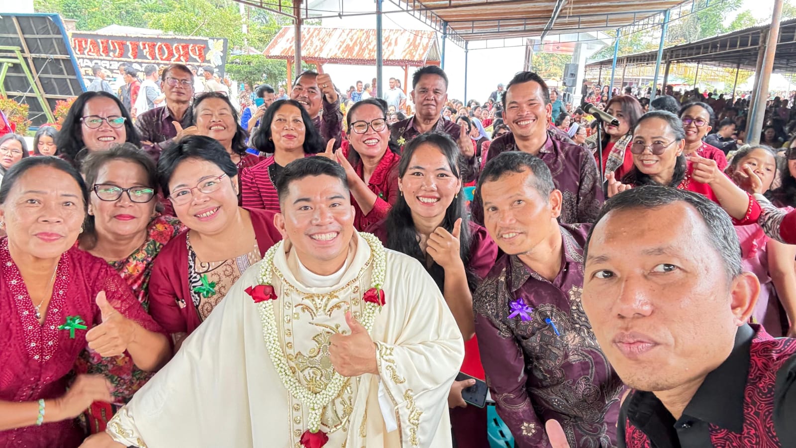 Dalam homilinya yang sederhana namun menyentuh, Pastor Moel berulang kali mengucapkan kata yang menggugah hati umat: “akhirnya, akhirnya, akhirnya gabe pastor.” Ia membagikan kisah penantian panjangnya, bagaimana selama bertahun-tahun banyak orang bukan mengucapkan “selamat”, melainkan berkata, “akhirnya ya, Pastor.” Sebuah ungkapan yang mencerminkan perjalanan iman yang tidak instan, tetapi ditempa oleh kesabaran.