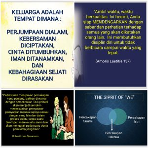 Selain itu juga meneguhkan keluarga untuk senantiasa merawat dan memupuk komitmen awal membangun keluarga.