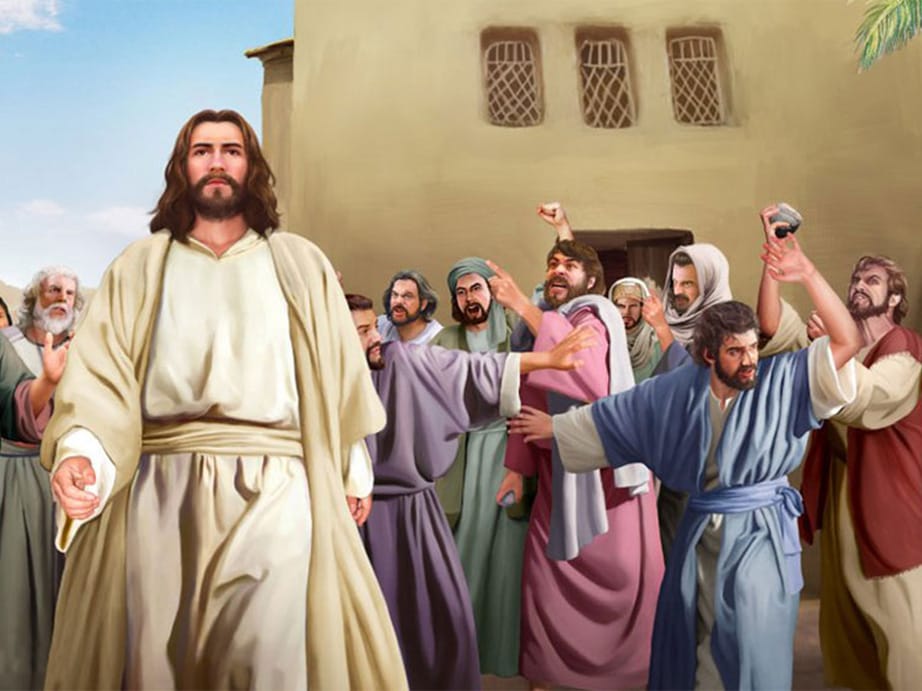 Ketika Yesus menyindir dengan mengangkat kisah nabi Elia dan Elisa, mereka tersinggung dan marah. Lalu berusaha melemparkan Yesus ke tebing gunung, tempat kota itu terletak.
