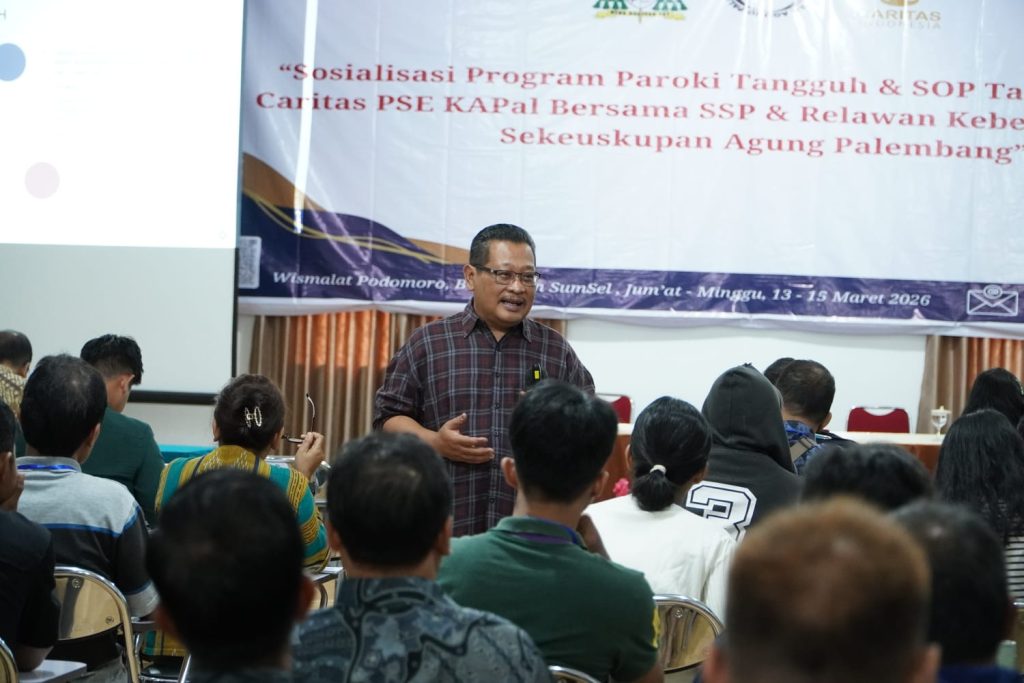PALEMBANG, KATOLIKANA    – Komisi Pengembangan Sosial Ekonomi (PSE) Keuskupan Agung Palembang (KAPal) bersama Yayasan Karina (Caritas Indonesia) menggelar sosialisasi intensif “Program Paroki Tangguh dan SOP Tanggap Darurat” pada 13–15 Maret 2026 di Wismalat Podomoro, Palembang.
