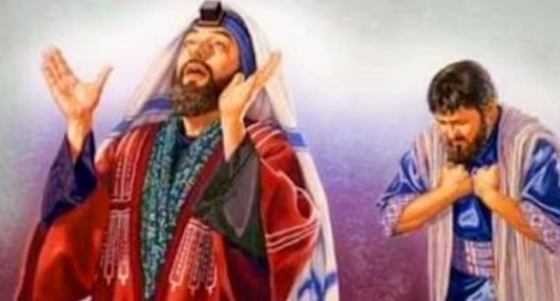Dua orang yang pergi ke Bait Allah untuk berdoa menampilkan kontras satu sama lain. Yang pertama adalah orang Farisi yang membanggakan dan memuji diri di hadapan Tuhan (Lukas 18:11).