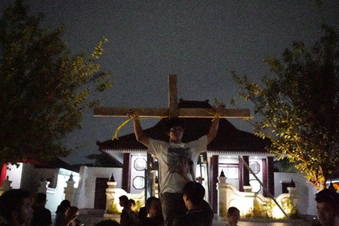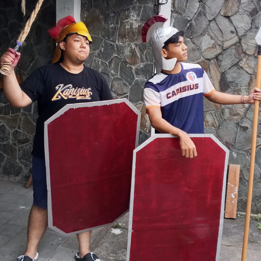 Uji coba properti dalam latihan rutin tablo Keluarga Mahasiswa Katolik UGM/Foto: Istimewa